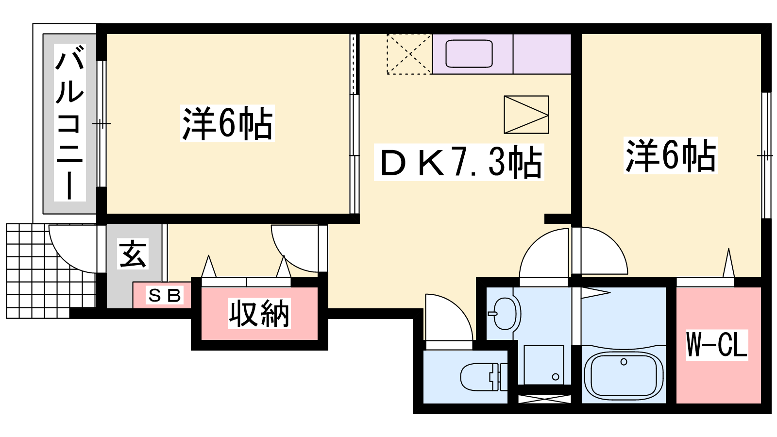 - DK7.3帖、洋室6帖、洋室6帖