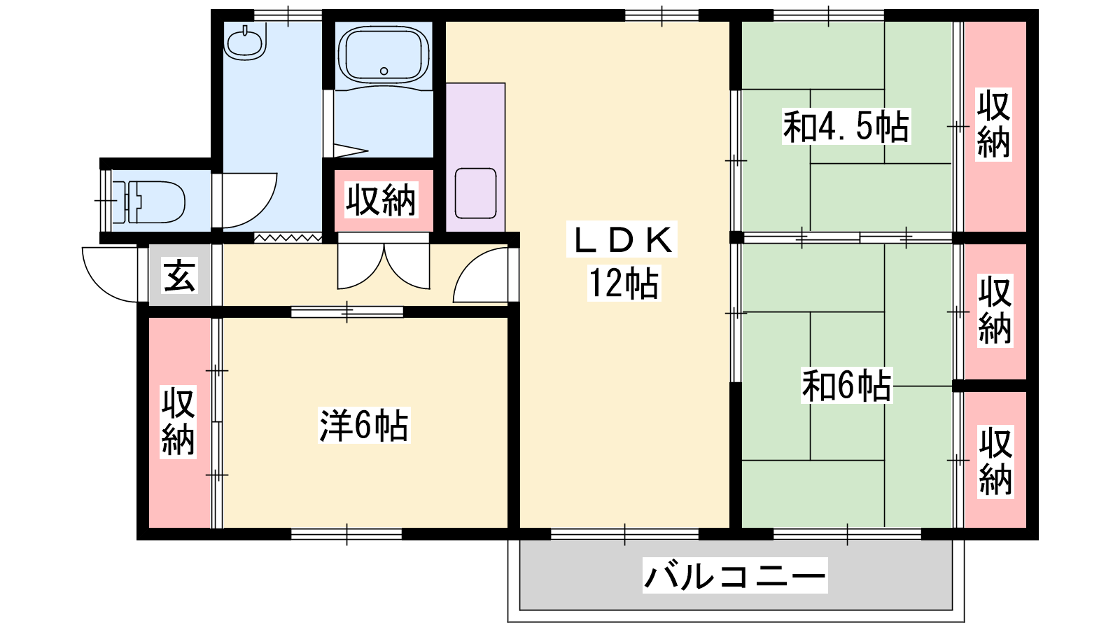 - LDK12帖、洋室6帖、和室4.5帖、和室4.5帖