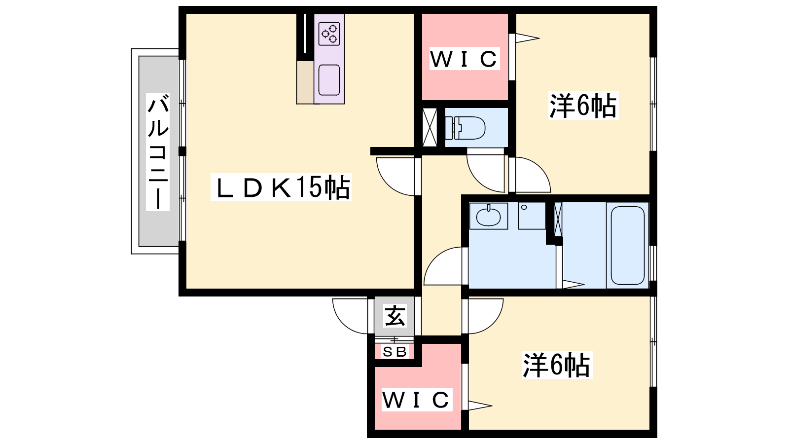 - LDK15帖、洋室6帖、洋室6帖