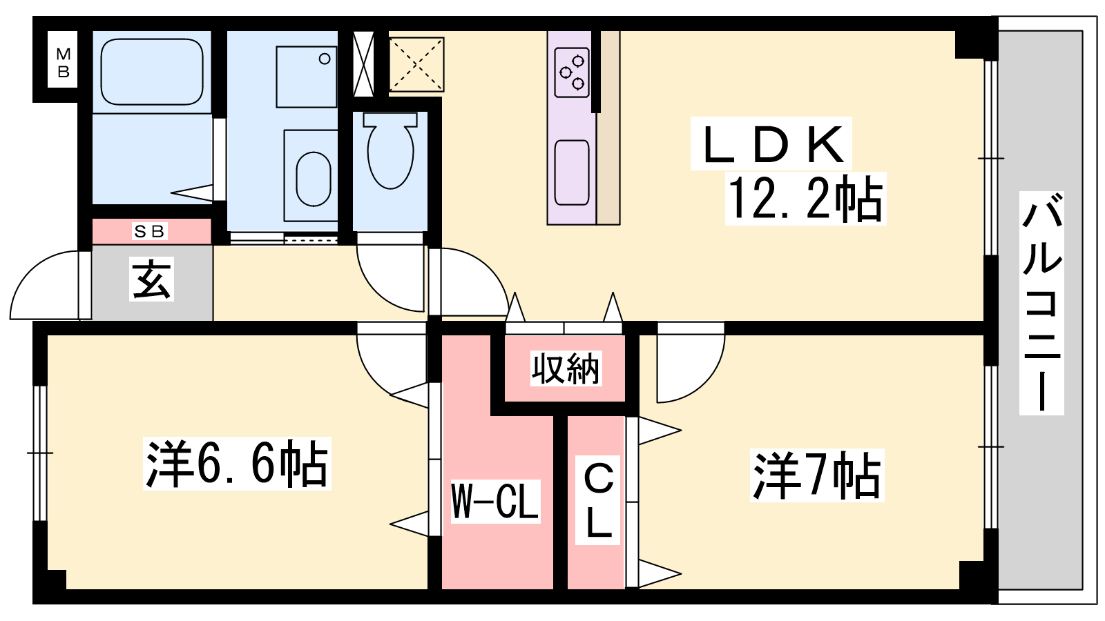 - LDK12.2帖、洋室7帖、洋室6.6帖