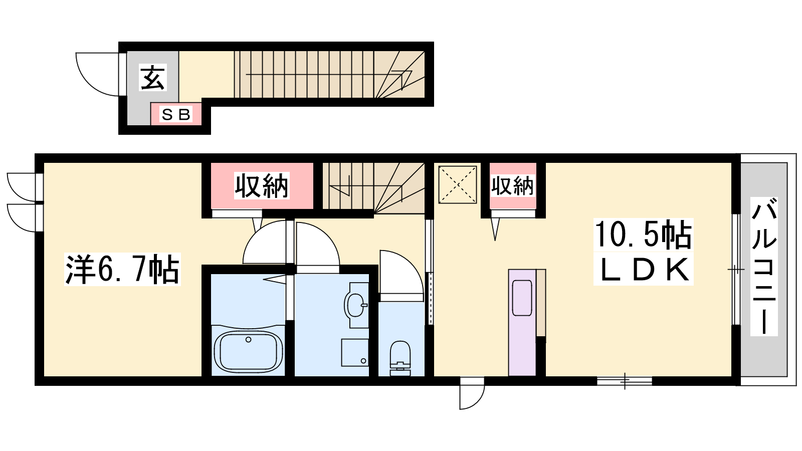 - LDK10.5帖、洋室6.7帖