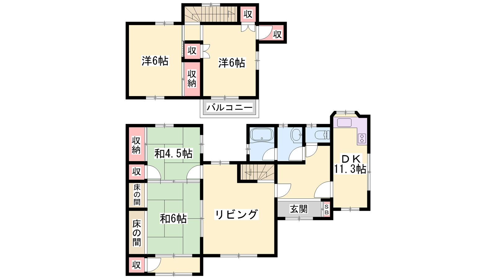 - DK11.3帖、洋室6帖、洋室6帖、和室6帖、和室4.5帖