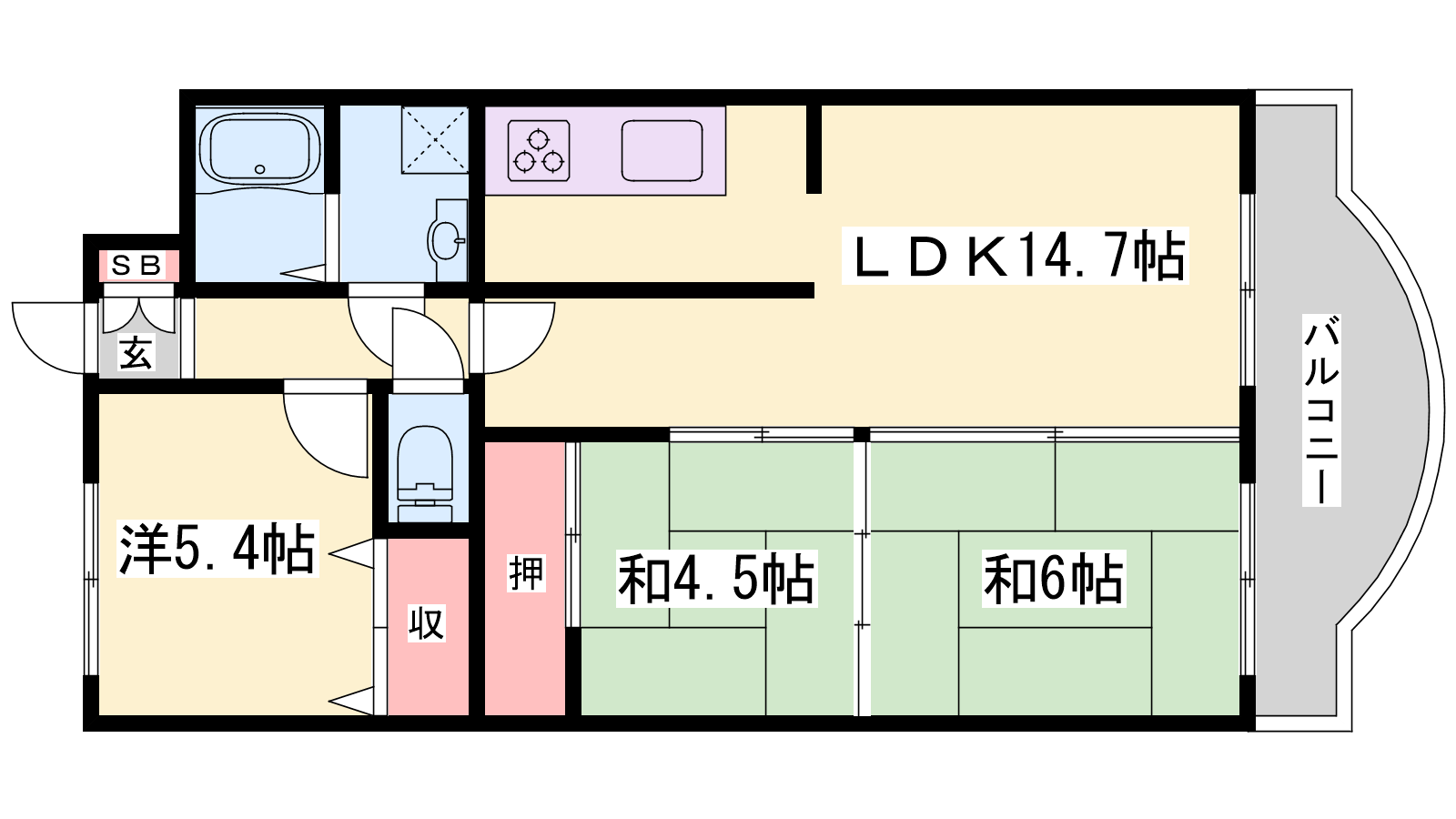 - LDK14.7帖、和室6帖、和室4.5帖、洋室5.4帖