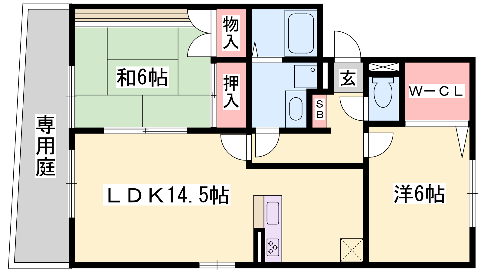- LDK14.5帖、洋室6帖、和室6帖