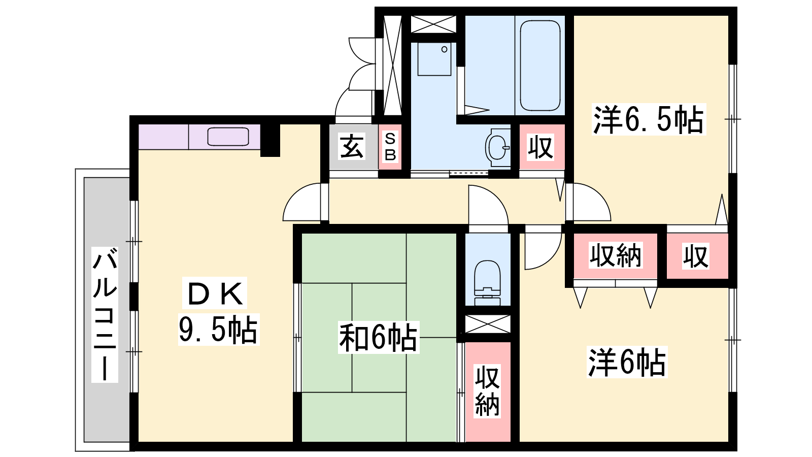 - DK9.5帖、洋室6.5帖、洋室6帖、和室6帖