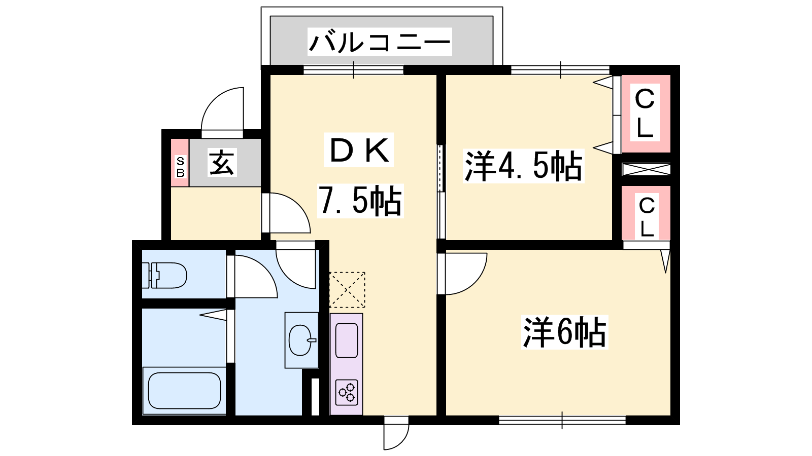 - DK7.5帖、洋室6帖、洋室4.5帖