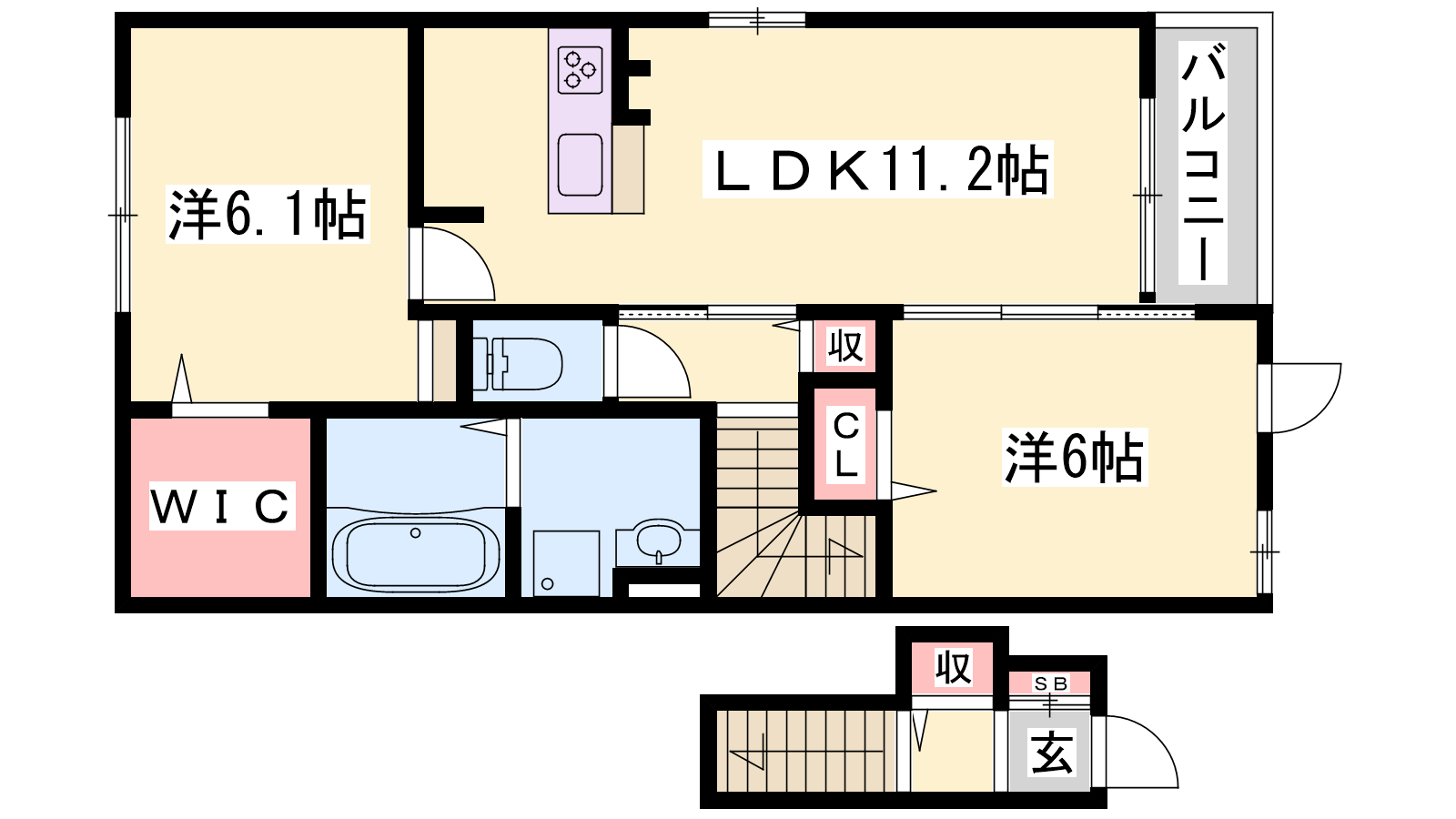 - LDK11.2帖、洋室6.1帖、洋室6帖