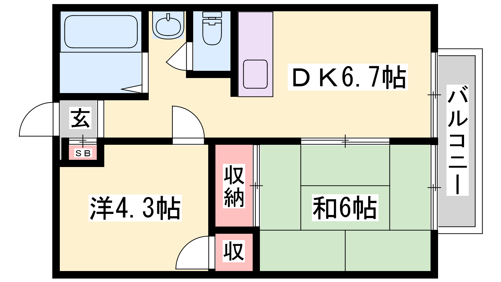 - DK6.7帖、洋室4.3帖、和室6帖