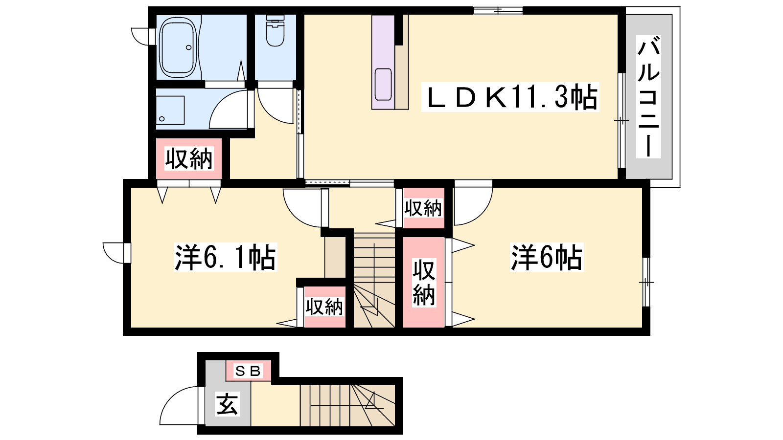 - LDK11.3帖、洋室6帖、洋室6.1帖