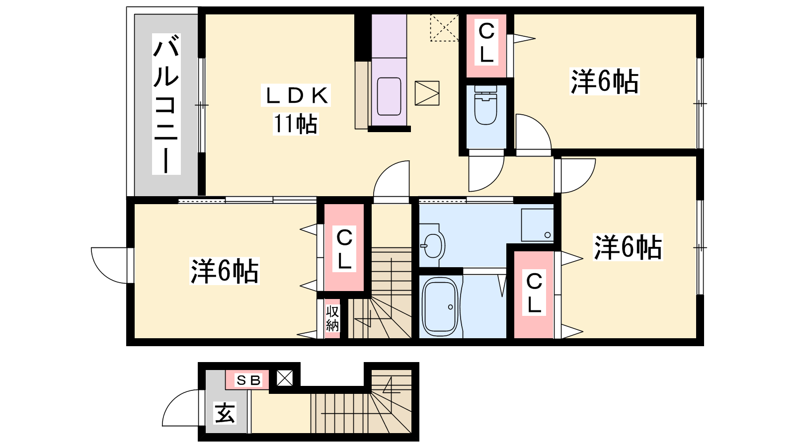 - LDK11帖、洋室6帖、洋室6帖、洋室6帖