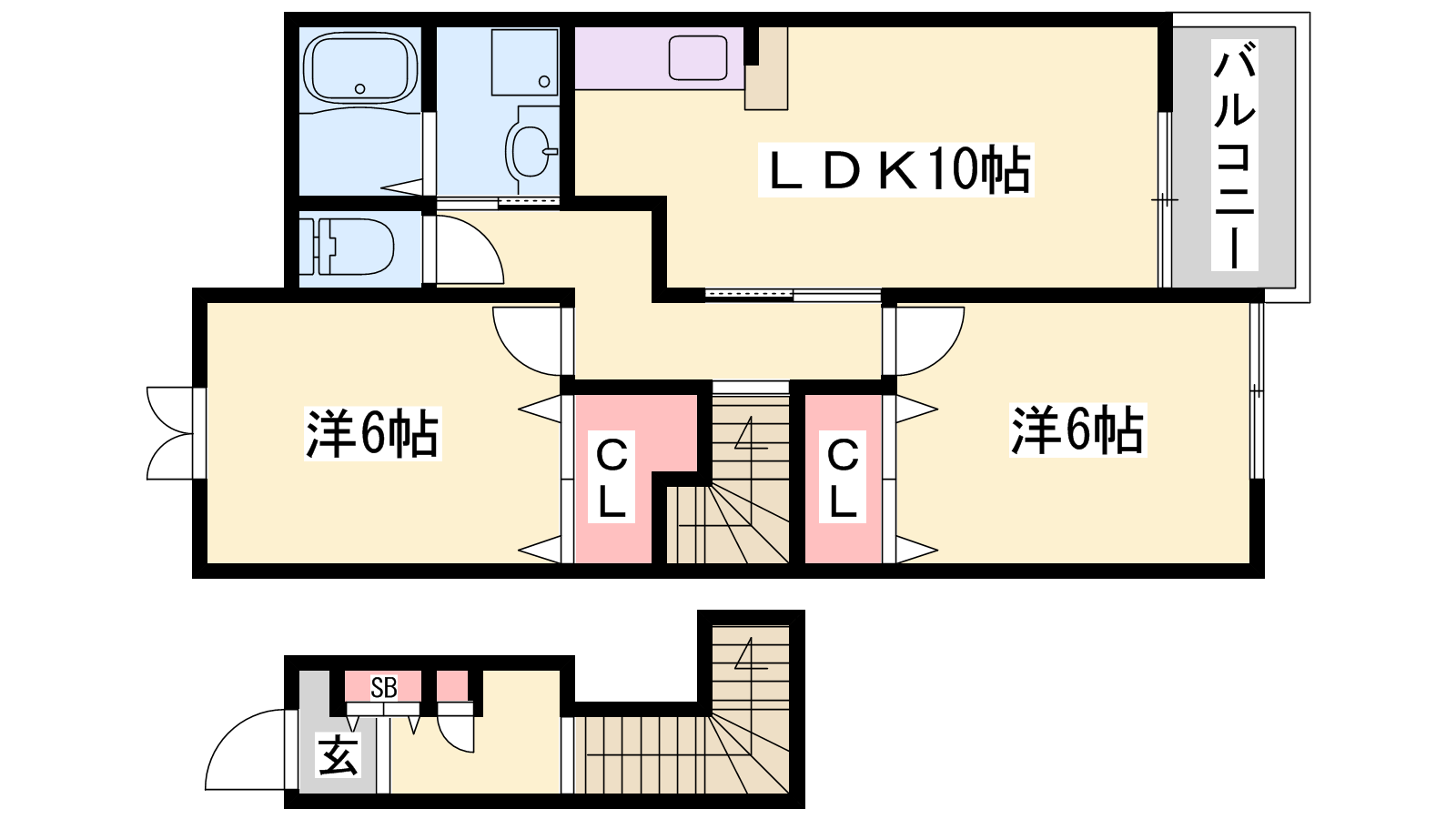 - LDK10帖、洋室6帖、洋室6帖