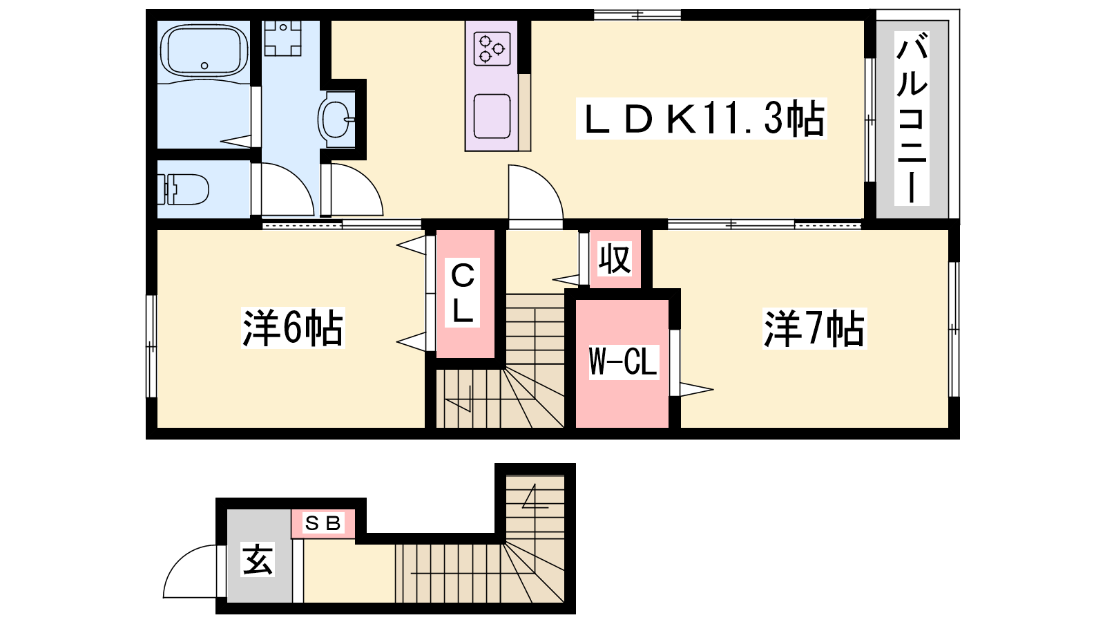- LDK11.3帖、洋室7帖、洋室6帖