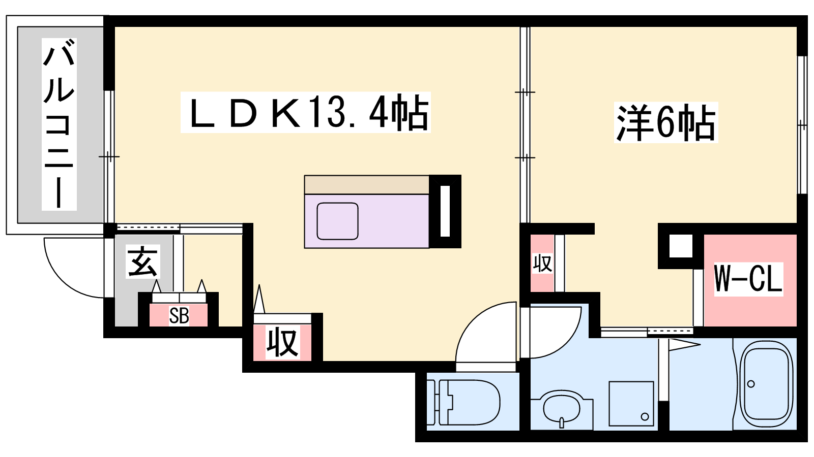 - LDK13.4帖、洋室6帖