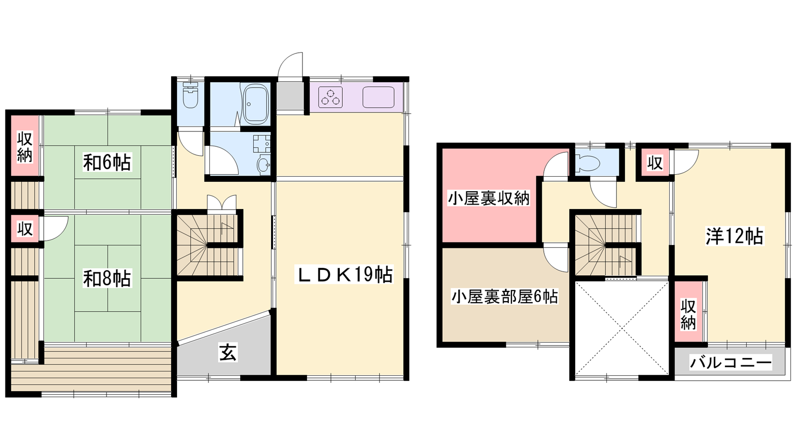 - LDK19帖、洋室12帖、和室8帖、和室6帖、S6帖