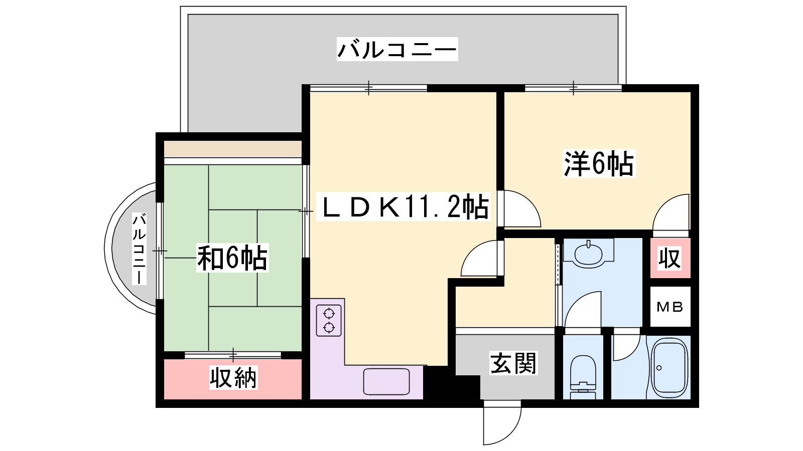 - LDK11.2帖、洋室6帖、和室6帖