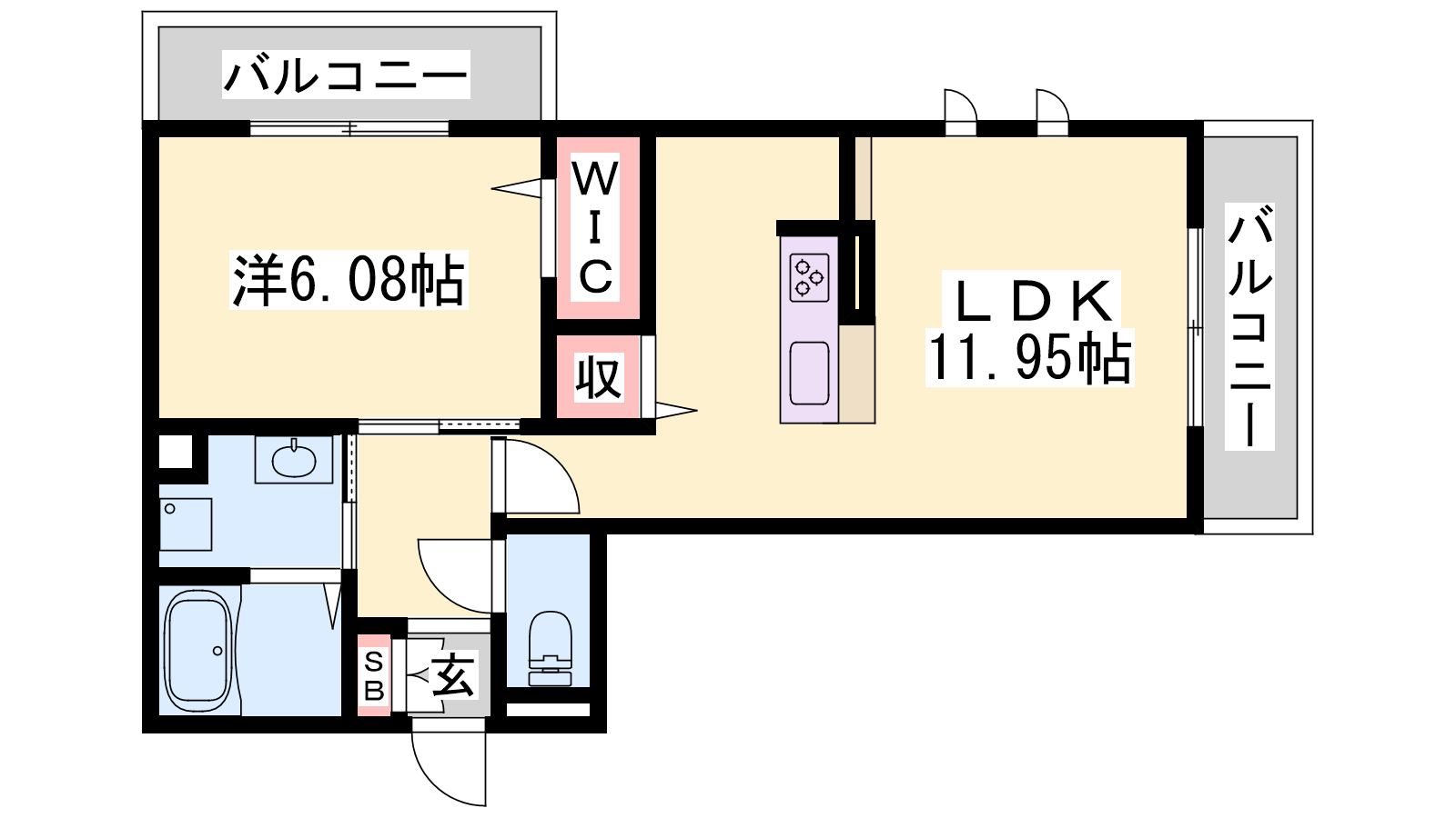 - LDK11.95帖、洋室6.08帖