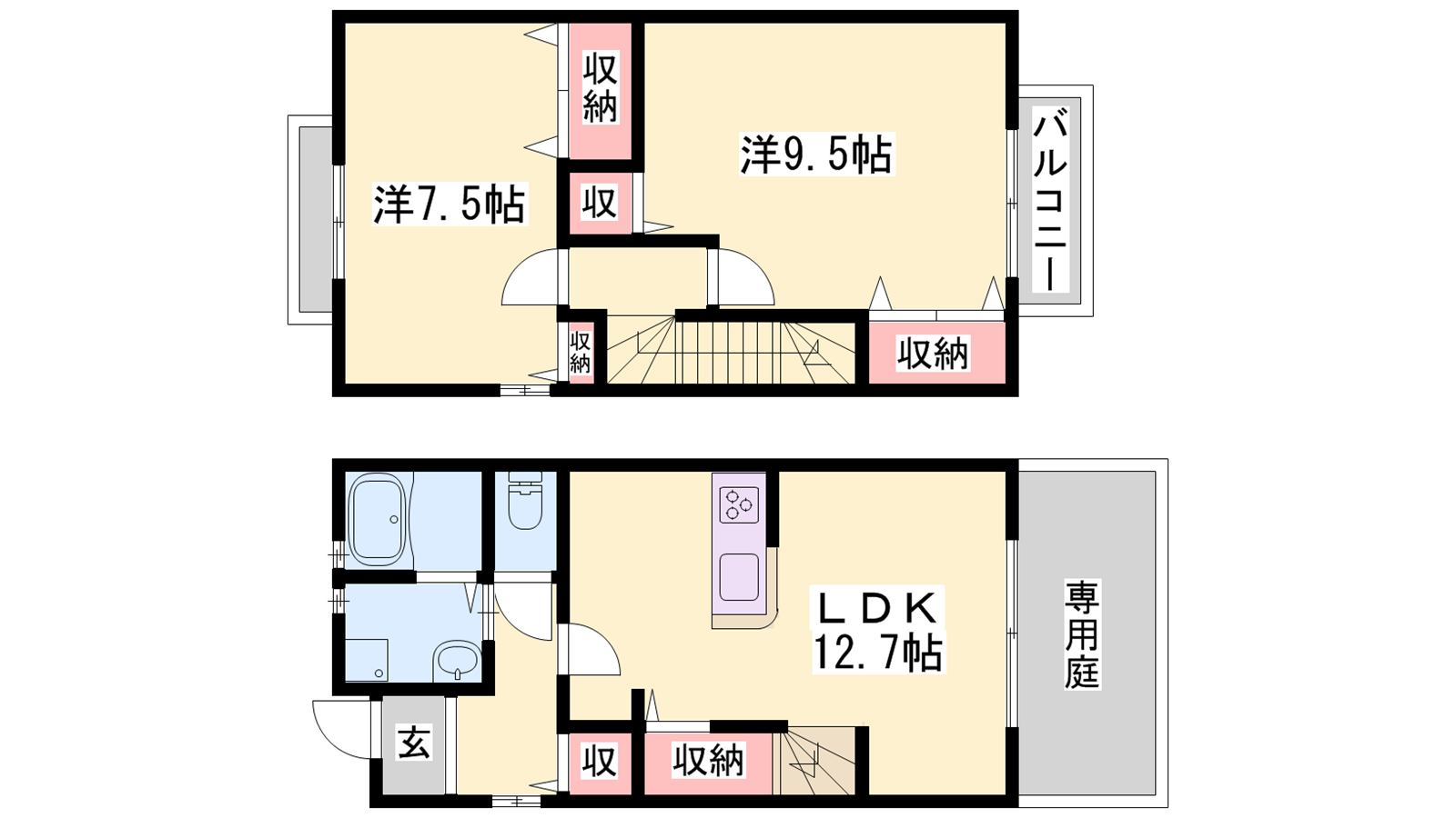 - LDK12.7帖、洋室9.5帖、洋室7.5帖