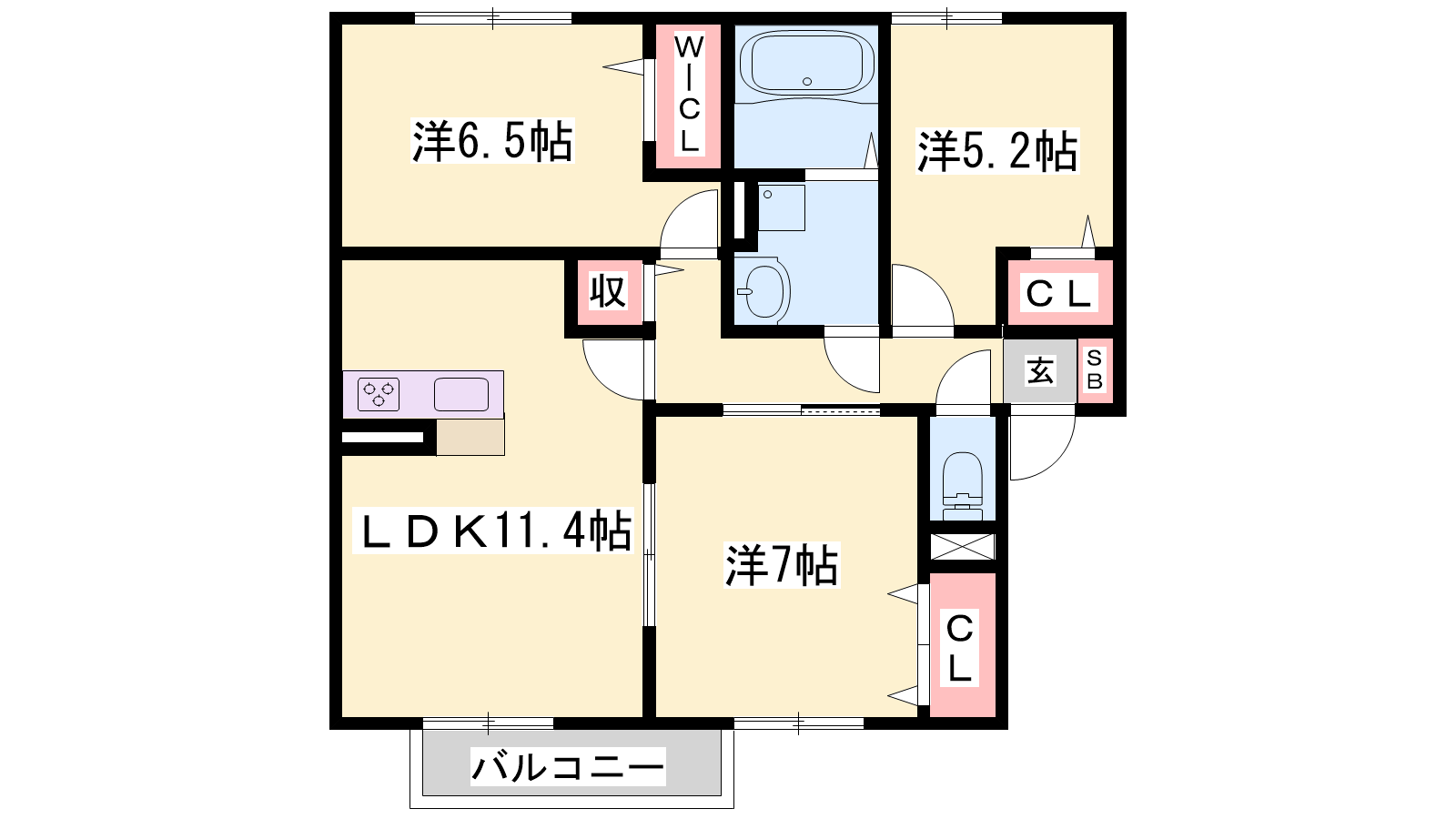 - LDK11.4帖、洋室7帖、洋室6.5帖、K5.2帖
