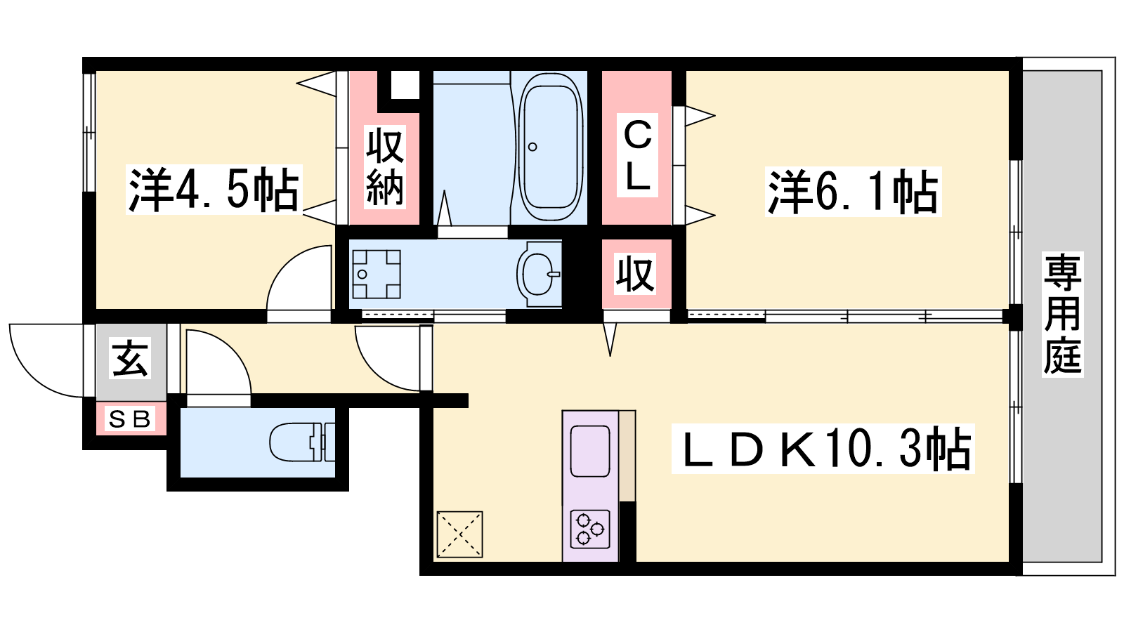 - LDK10.3帖、洋室6.1帖、洋室4.5帖