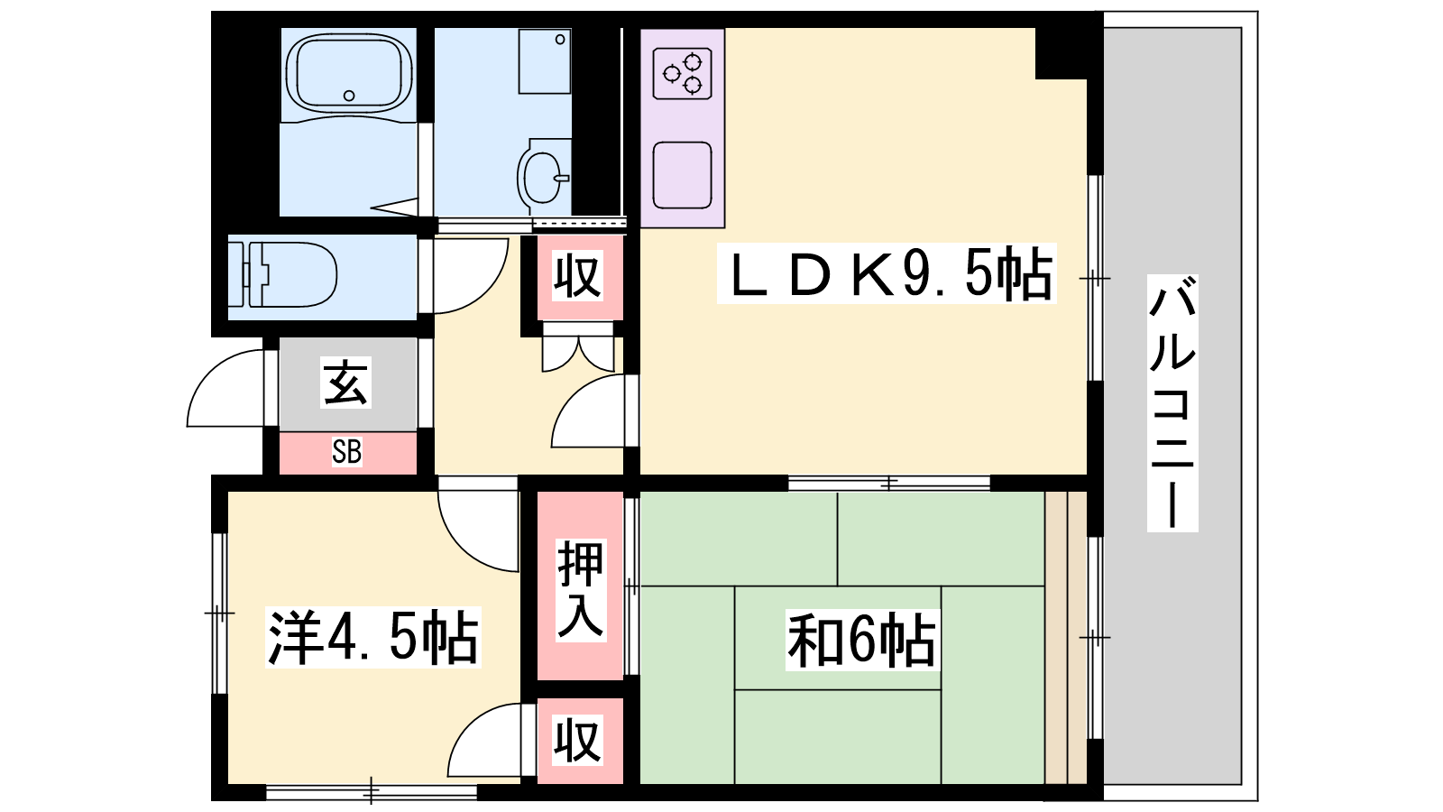 - LDK9.5帖、和室6帖、洋室4.5帖