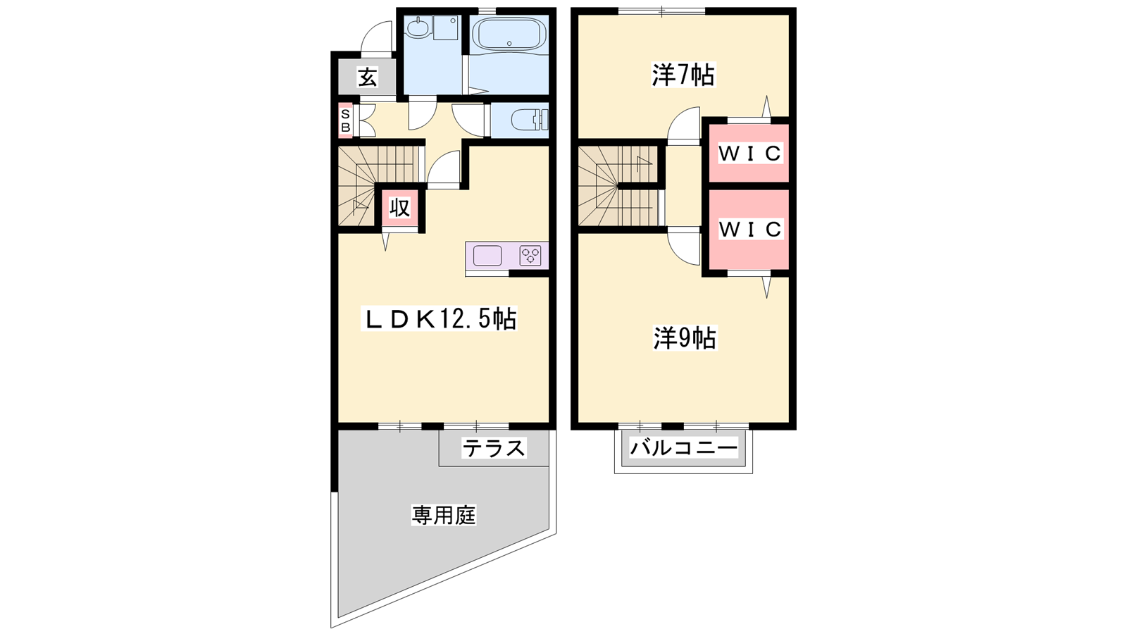 - LDK12.5帖、洋室9帖、洋室7帖