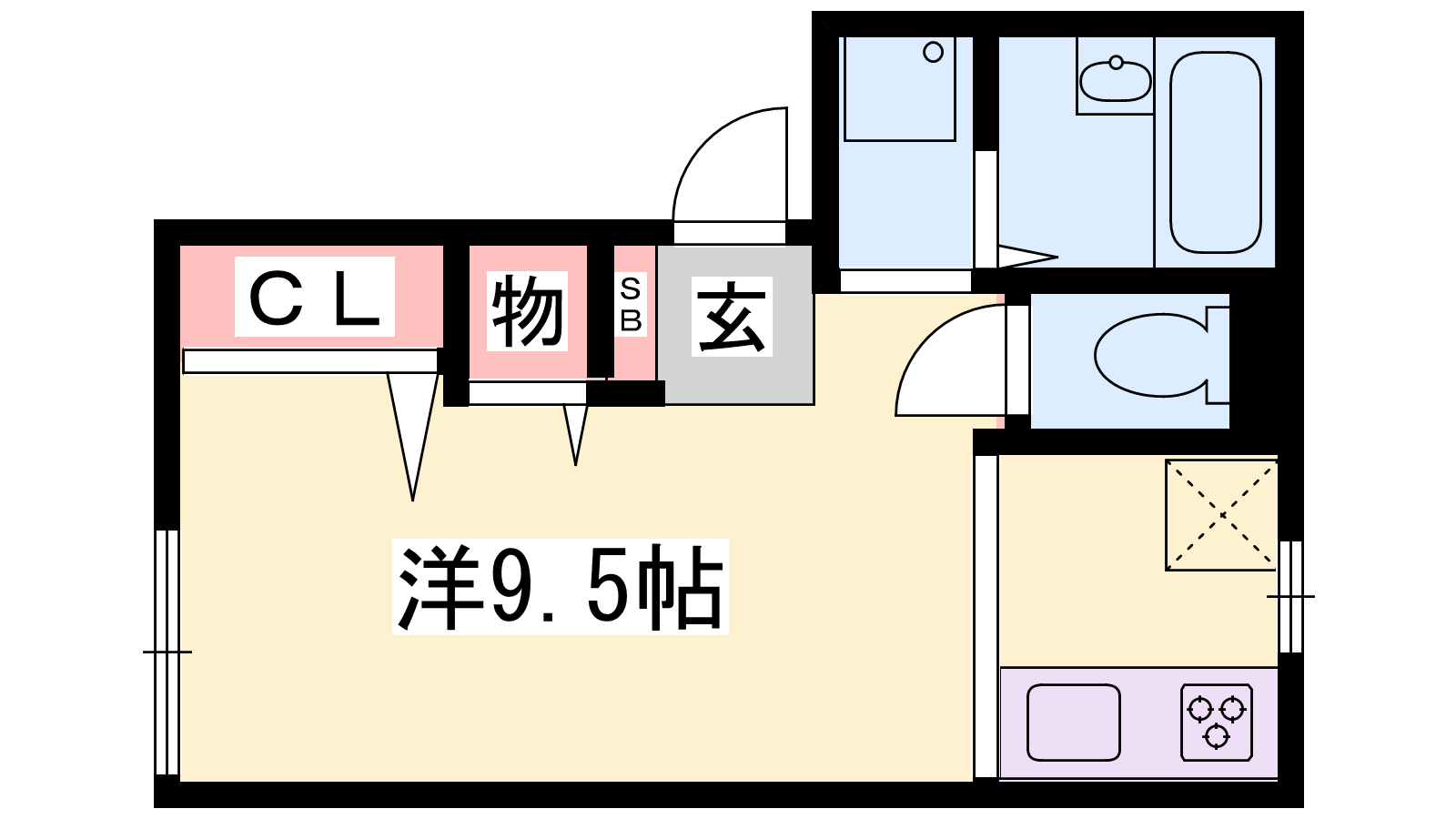 駐車場1台分込み、バス・トイレ別、エアコン付き!