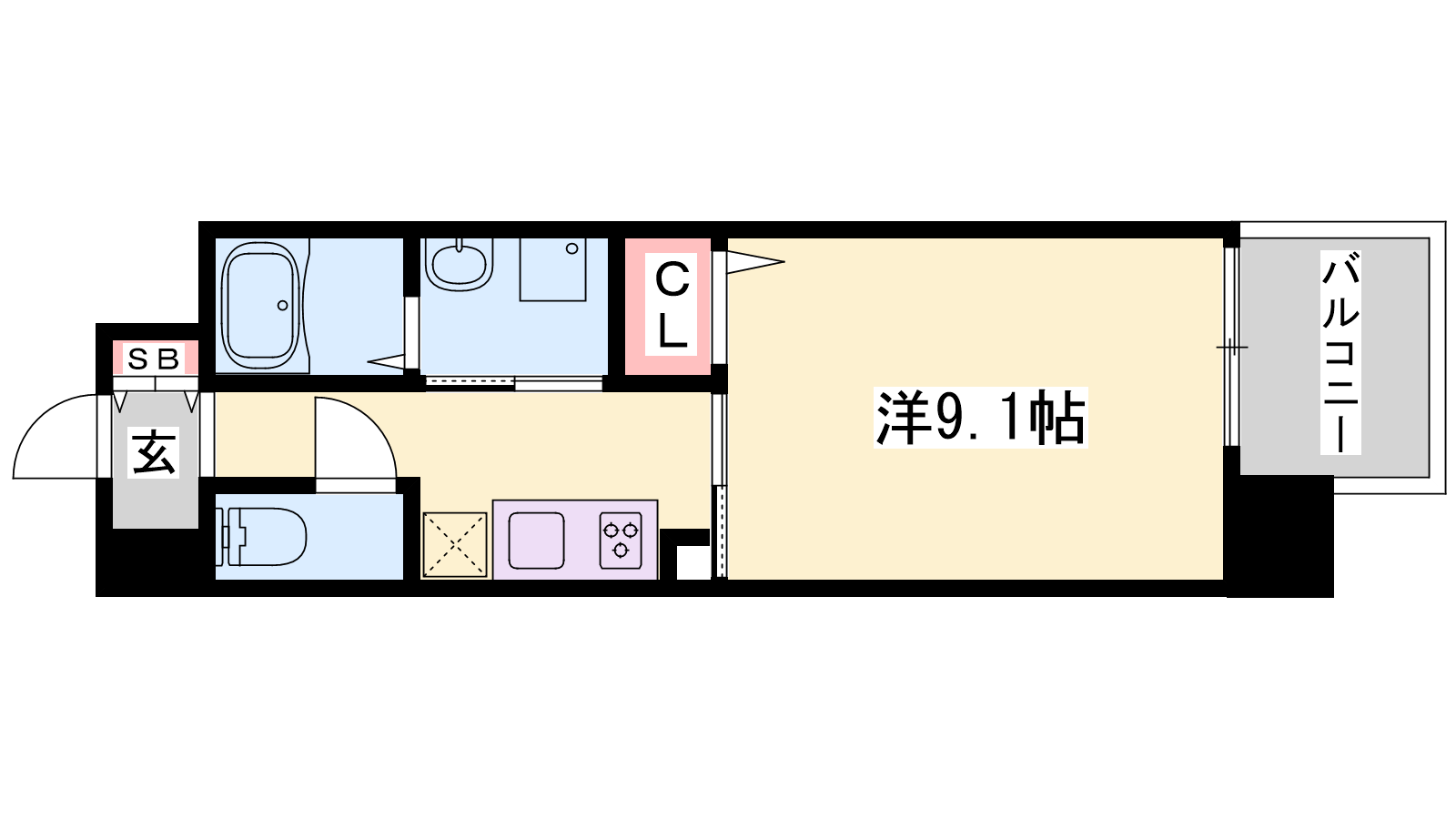 - K2.5帖、洋室9.1帖