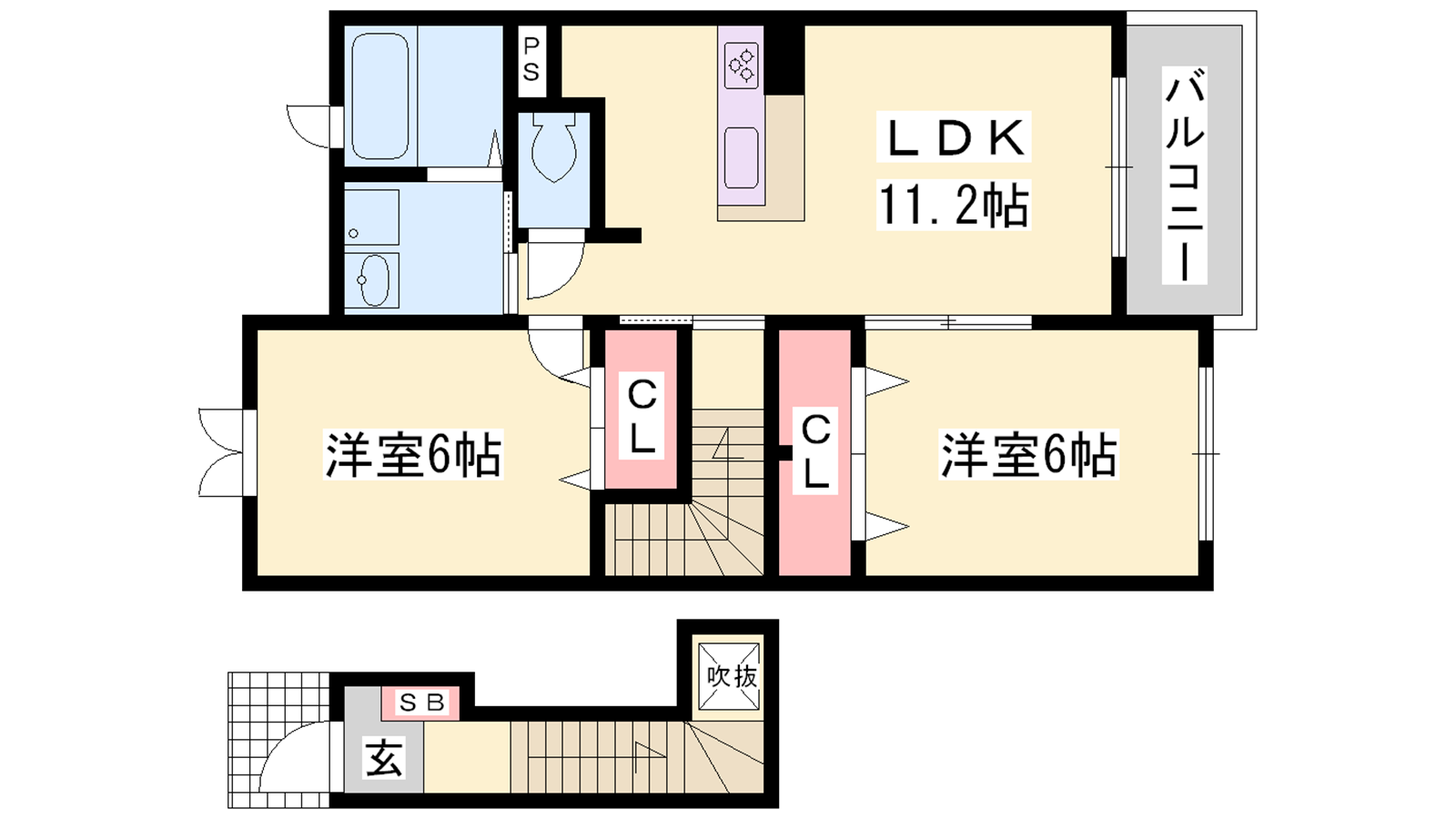- LDK11.2帖、洋室6帖、洋室6帖