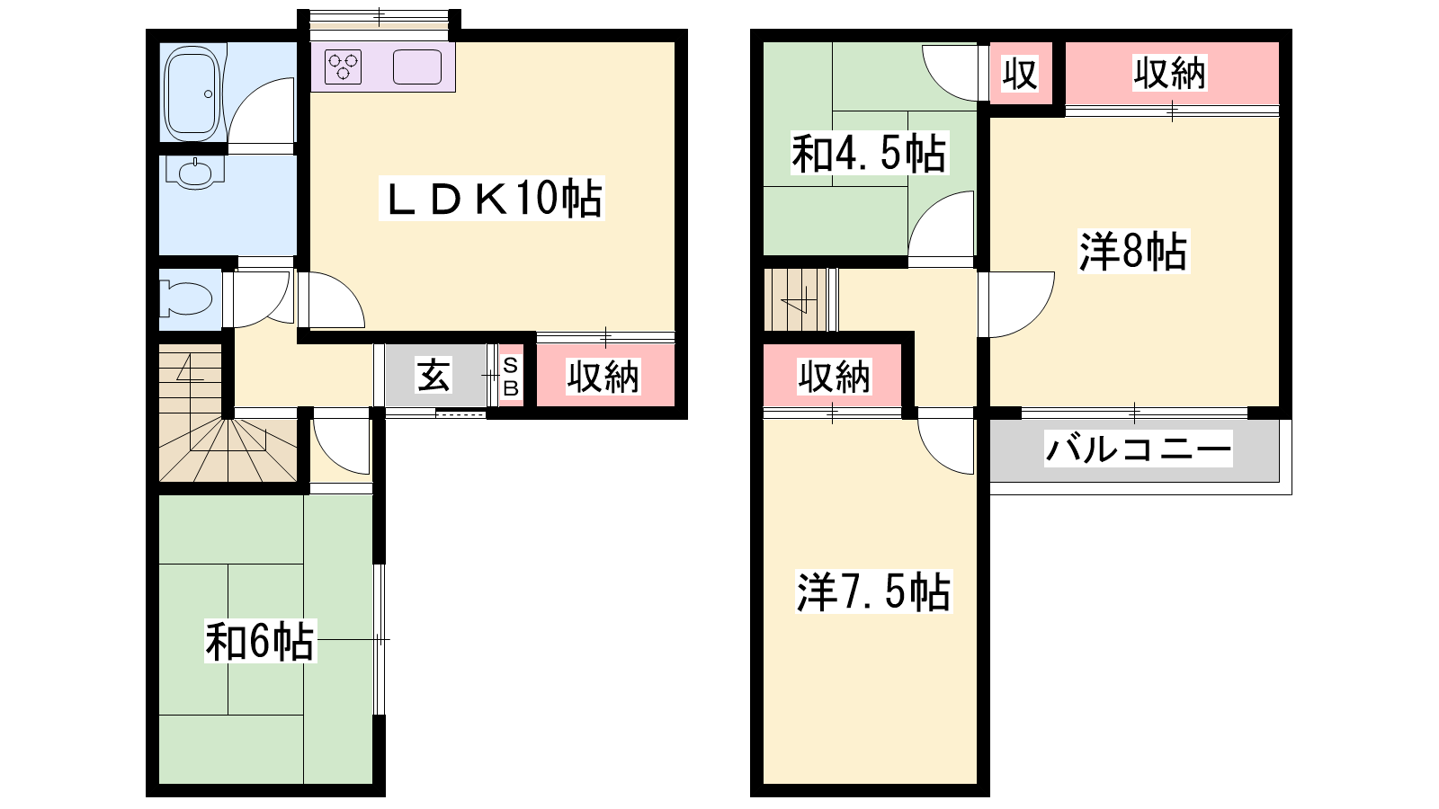 - LDK10帖、洋室8帖、洋室7.5帖、和室6帖