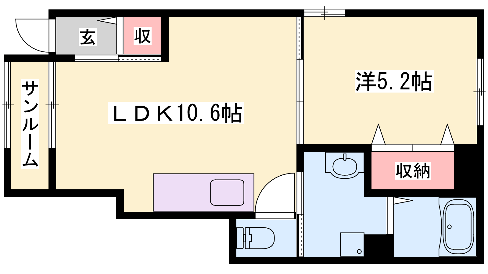 - LDK10.6帖、洋室5.2帖