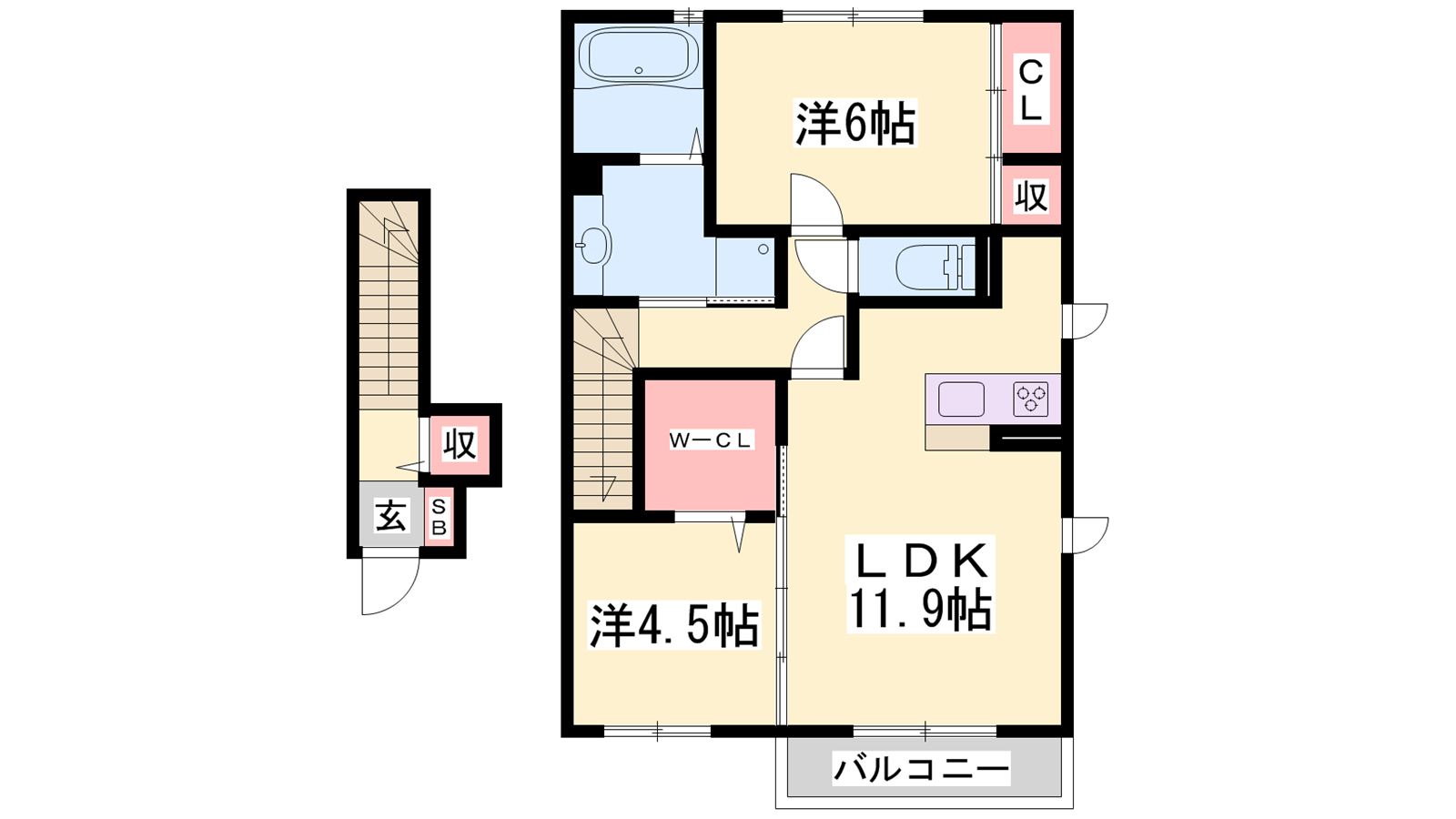 - LDK11.9帖、洋室6帖、洋室4.5帖