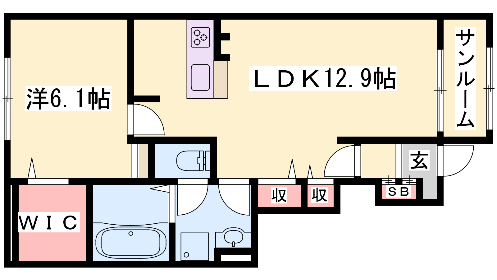 - LDK12.9帖、洋室6.1帖