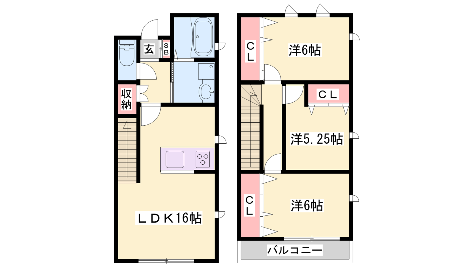 - LDK16帖、洋室6帖、洋室6帖、洋室5.25帖