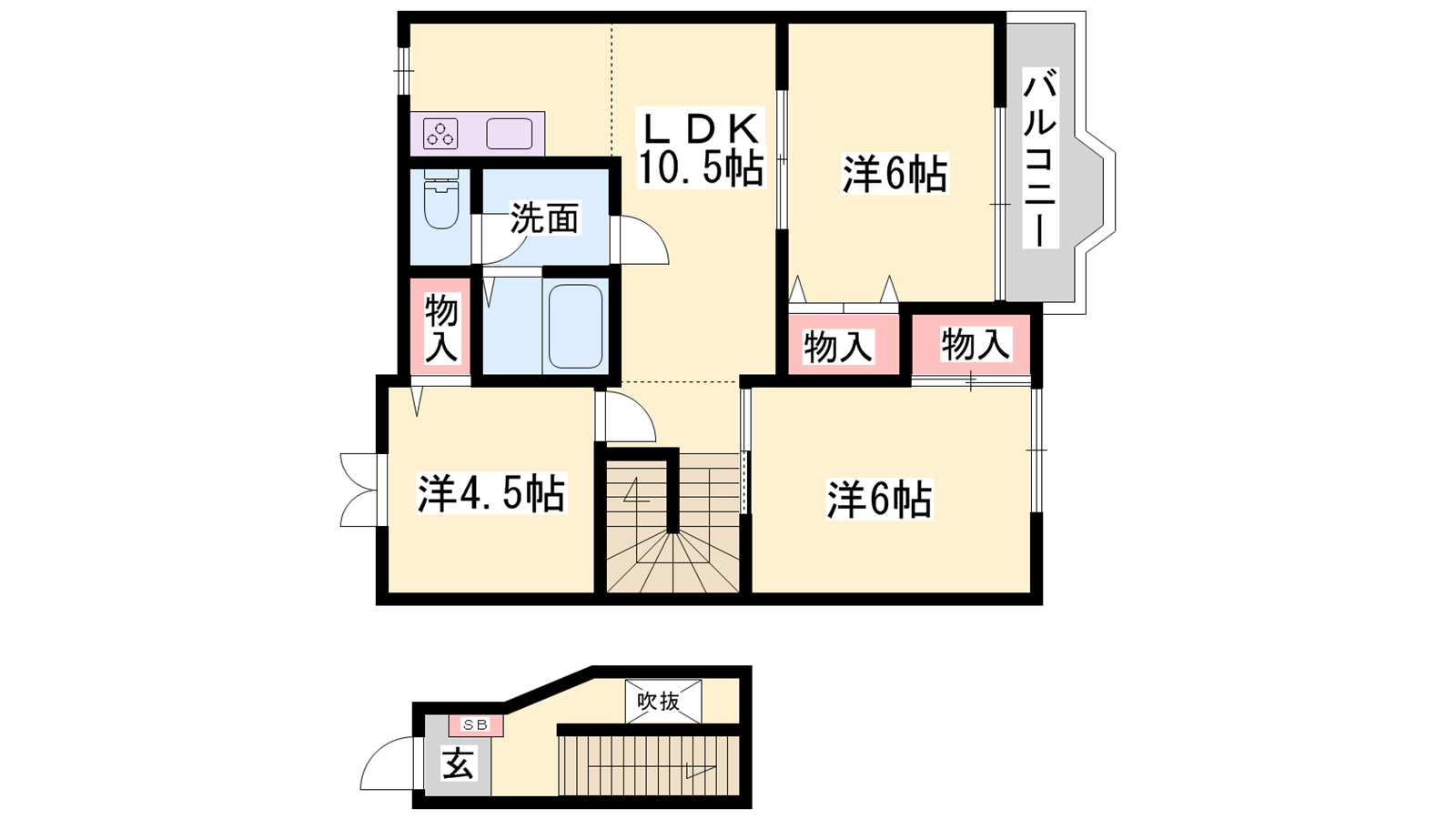 - LDK10.5帖、洋室6帖、洋室6帖、洋室4.5帖