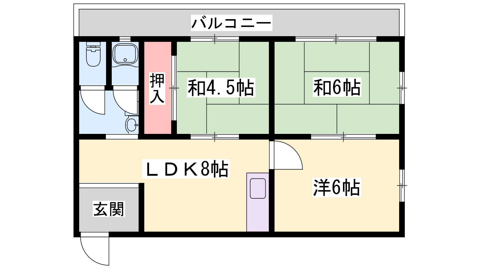 - LDK6帖、洋室6帖、和室6帖、和室4.5帖