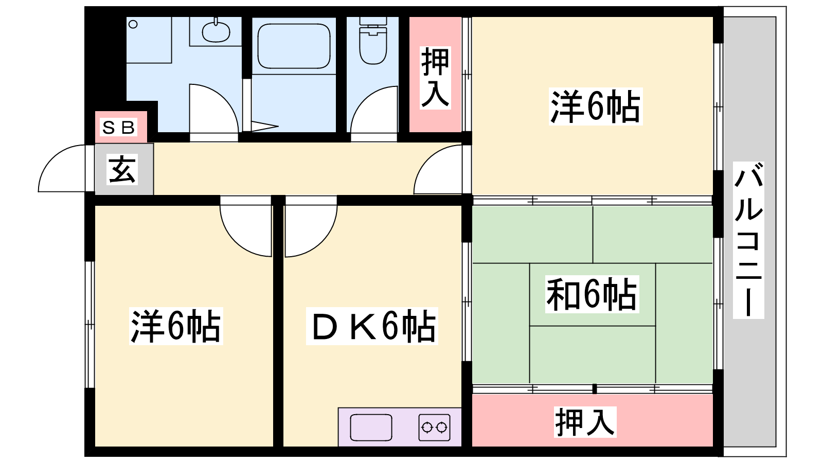 - DK6帖、和室6帖、洋室6帖、洋室6帖