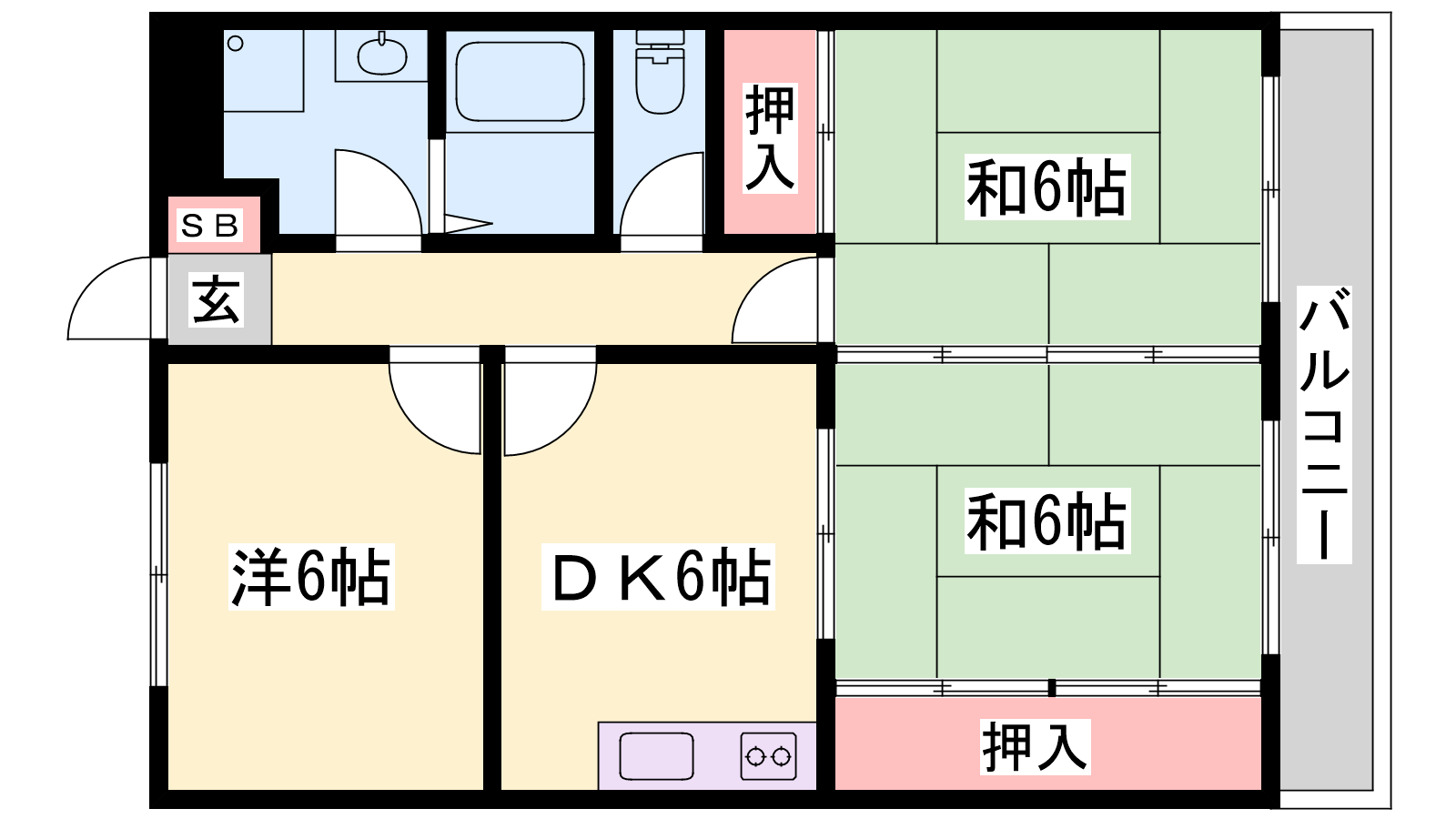 - DK6帖、和室6帖、和室6帖、洋室6帖