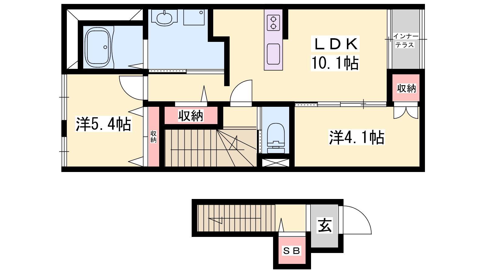 - LDK10.1帖、洋室5.4帖、洋室4.1帖