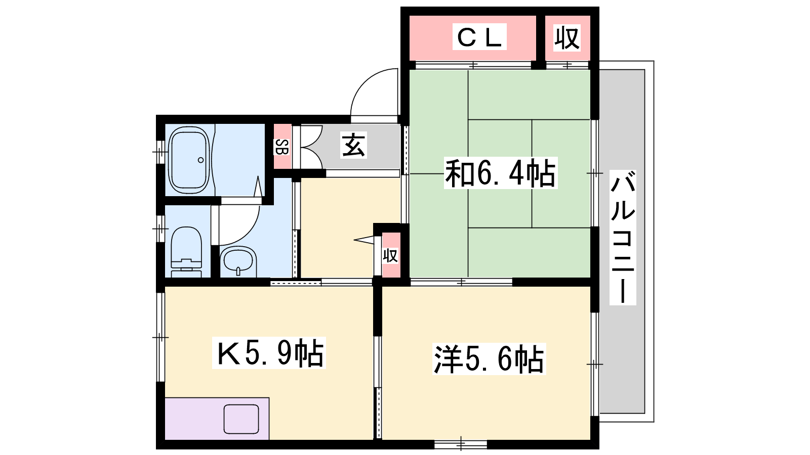 - K5.9帖、洋室5.6帖、和室6.4帖
