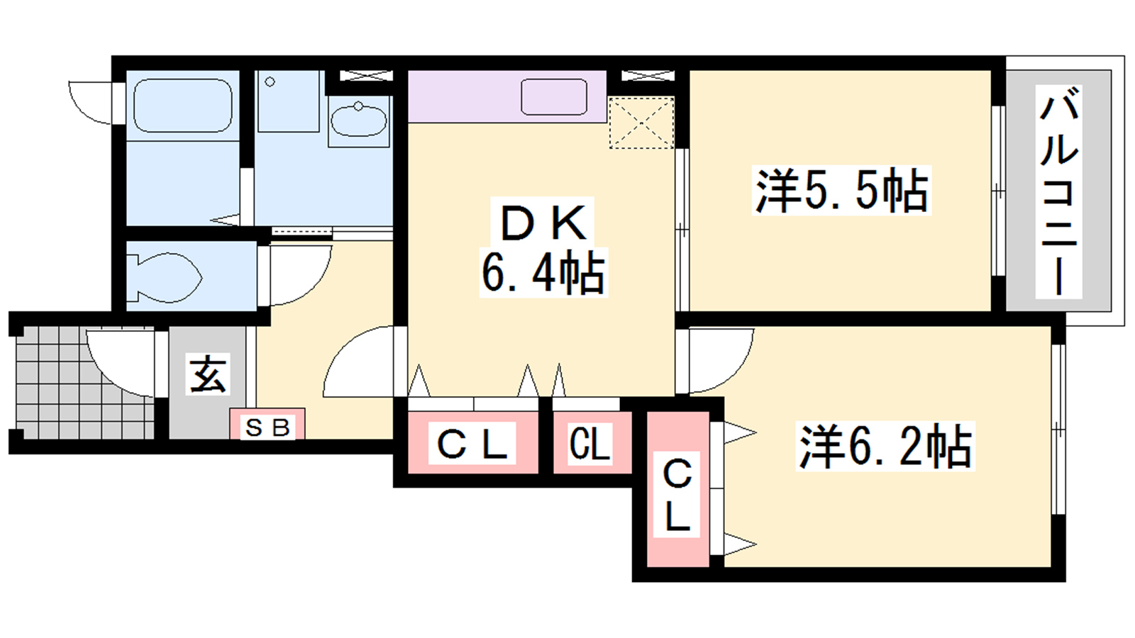- DK6.4帖、洋室6.2帖、洋室5.5帖