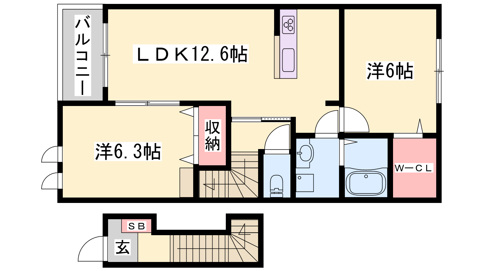 - LDK12.6帖、洋室6.3帖、洋室6帖
