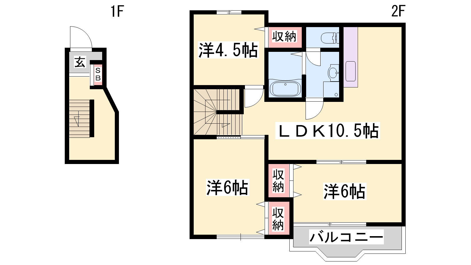 - LDK10.5帖、洋室6帖、洋室6帖、洋室4.5帖