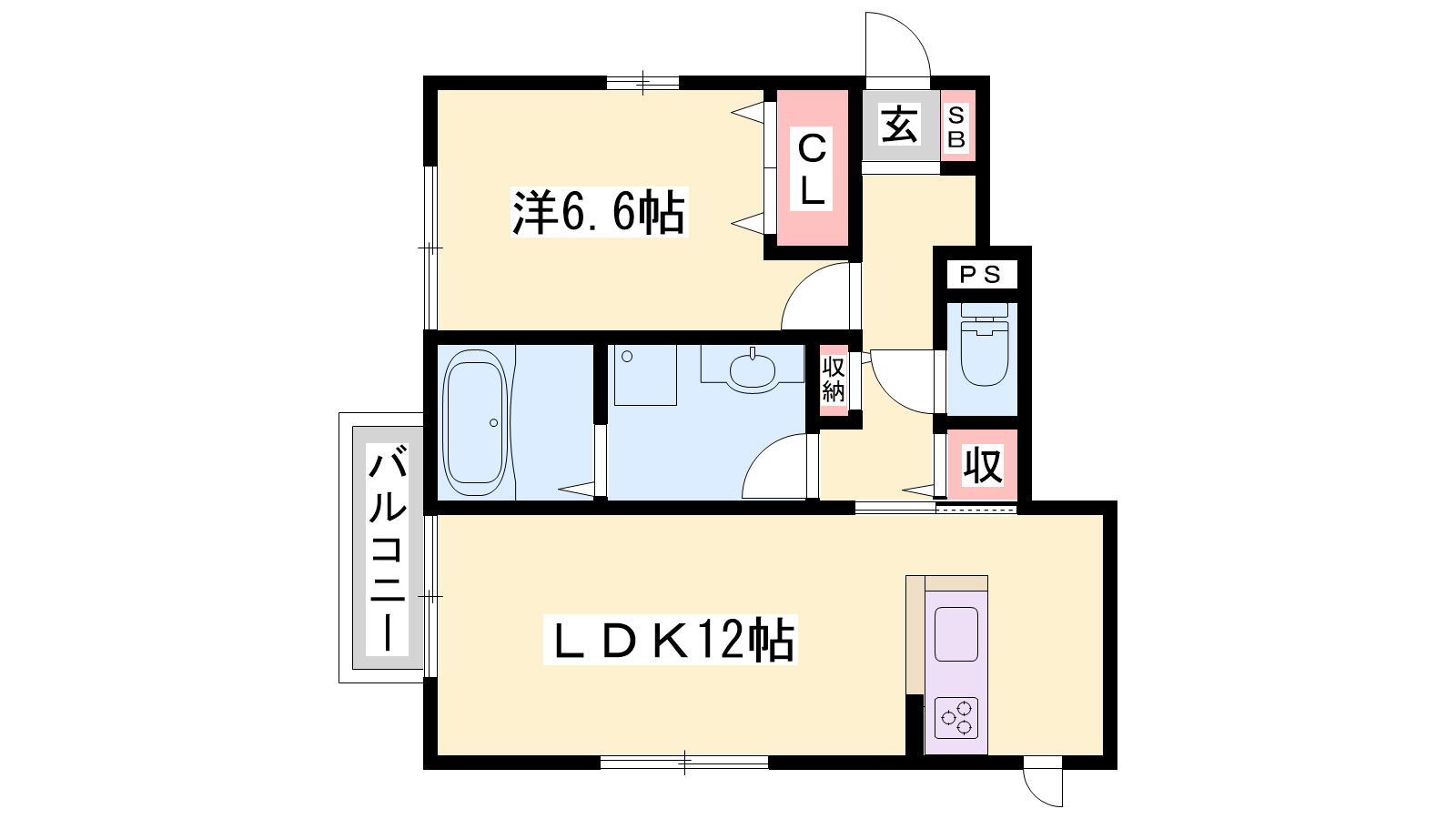 - LDK12帖、洋室6.6帖