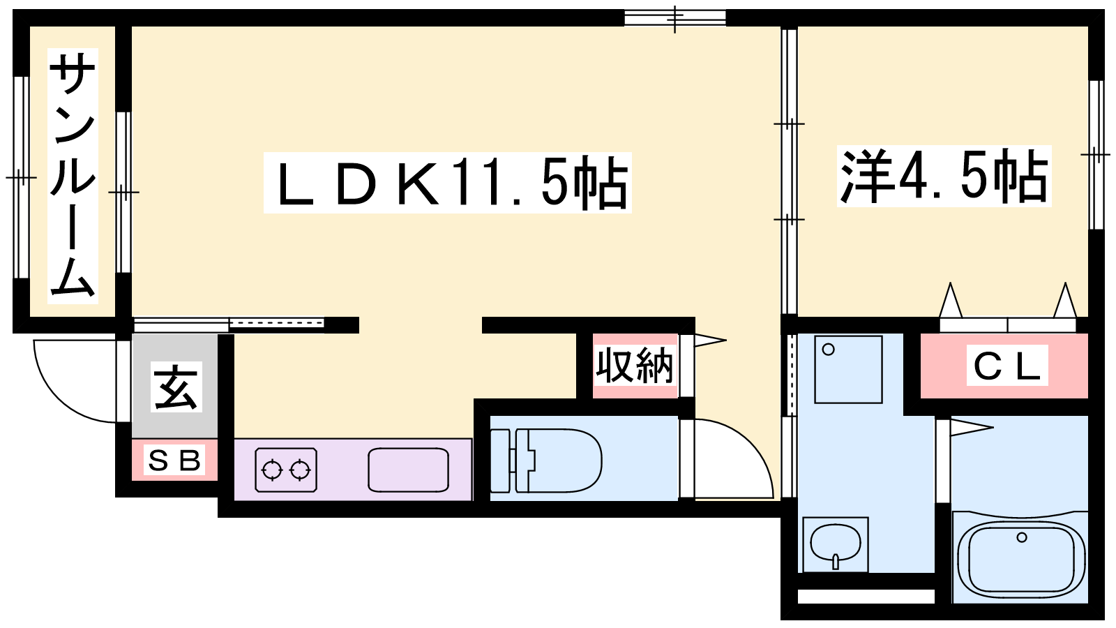 - LDK11.5帖、洋室4.5帖