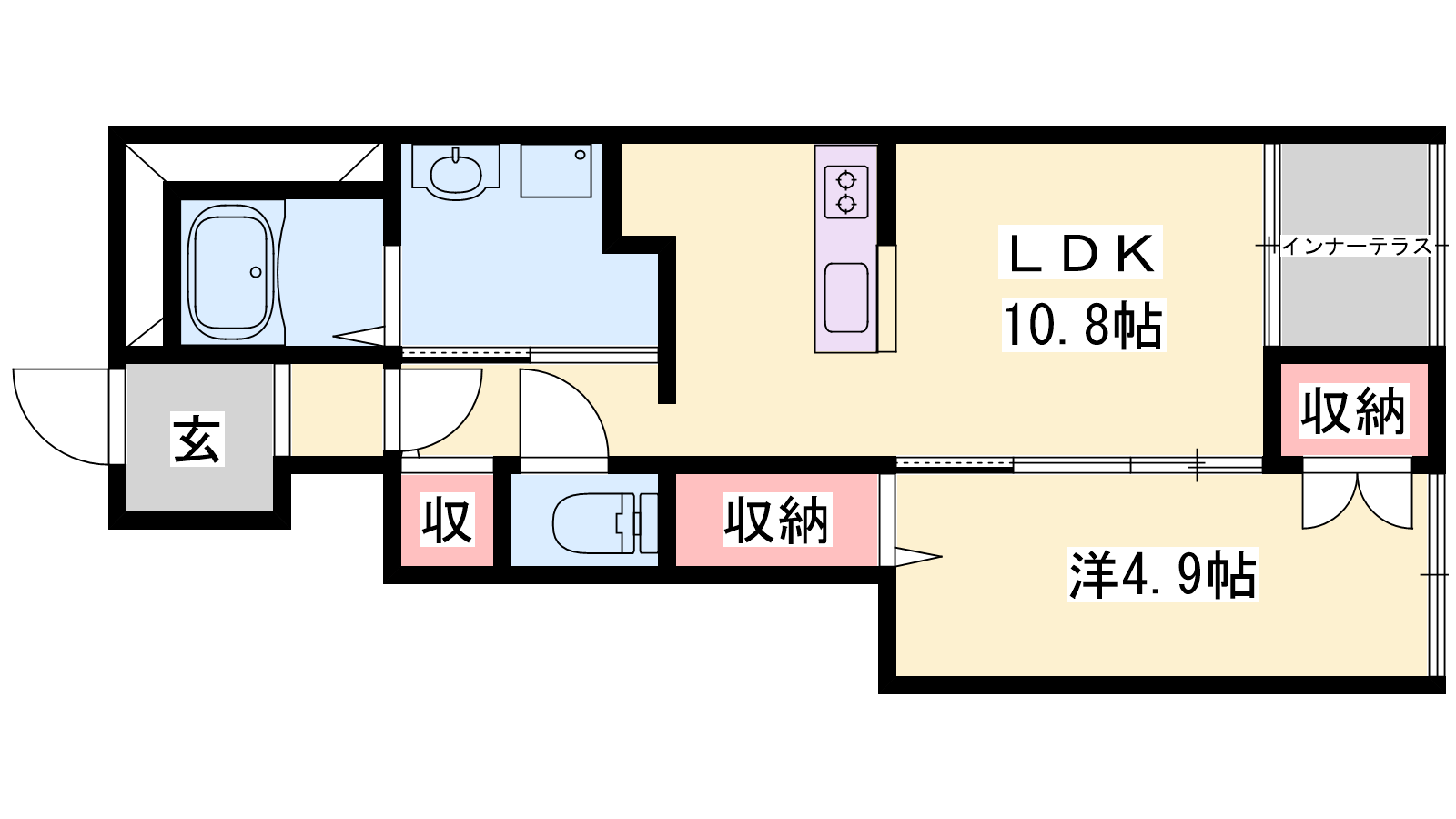 - LDK10.8帖、洋室4.9帖