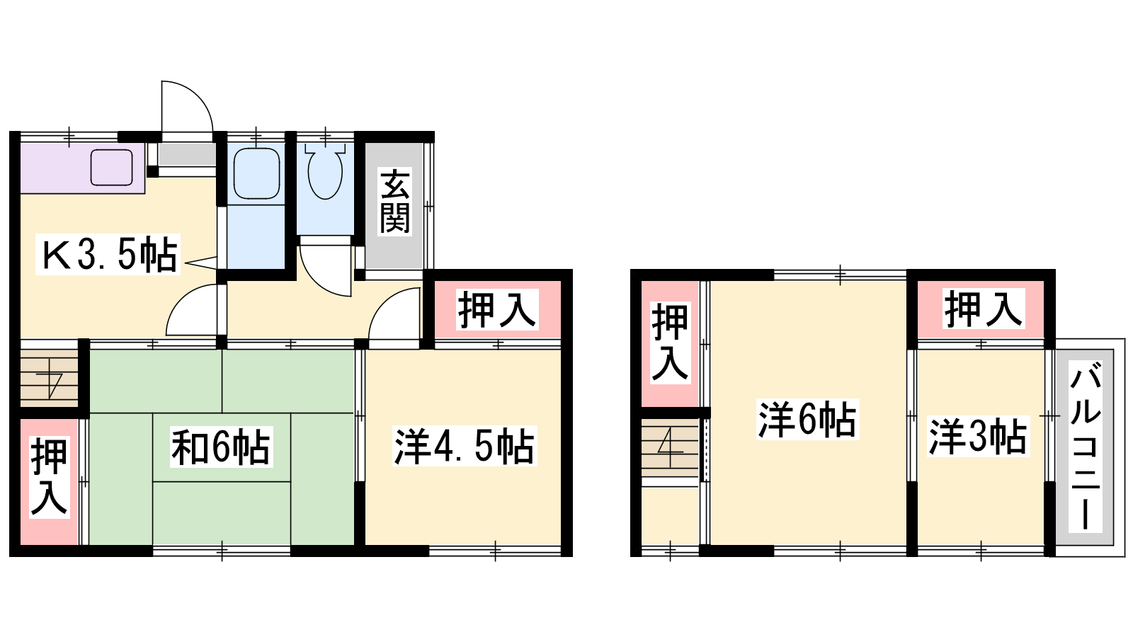 - K3.5帖、洋室6帖、洋室4.5帖、洋室3帖、和室6帖