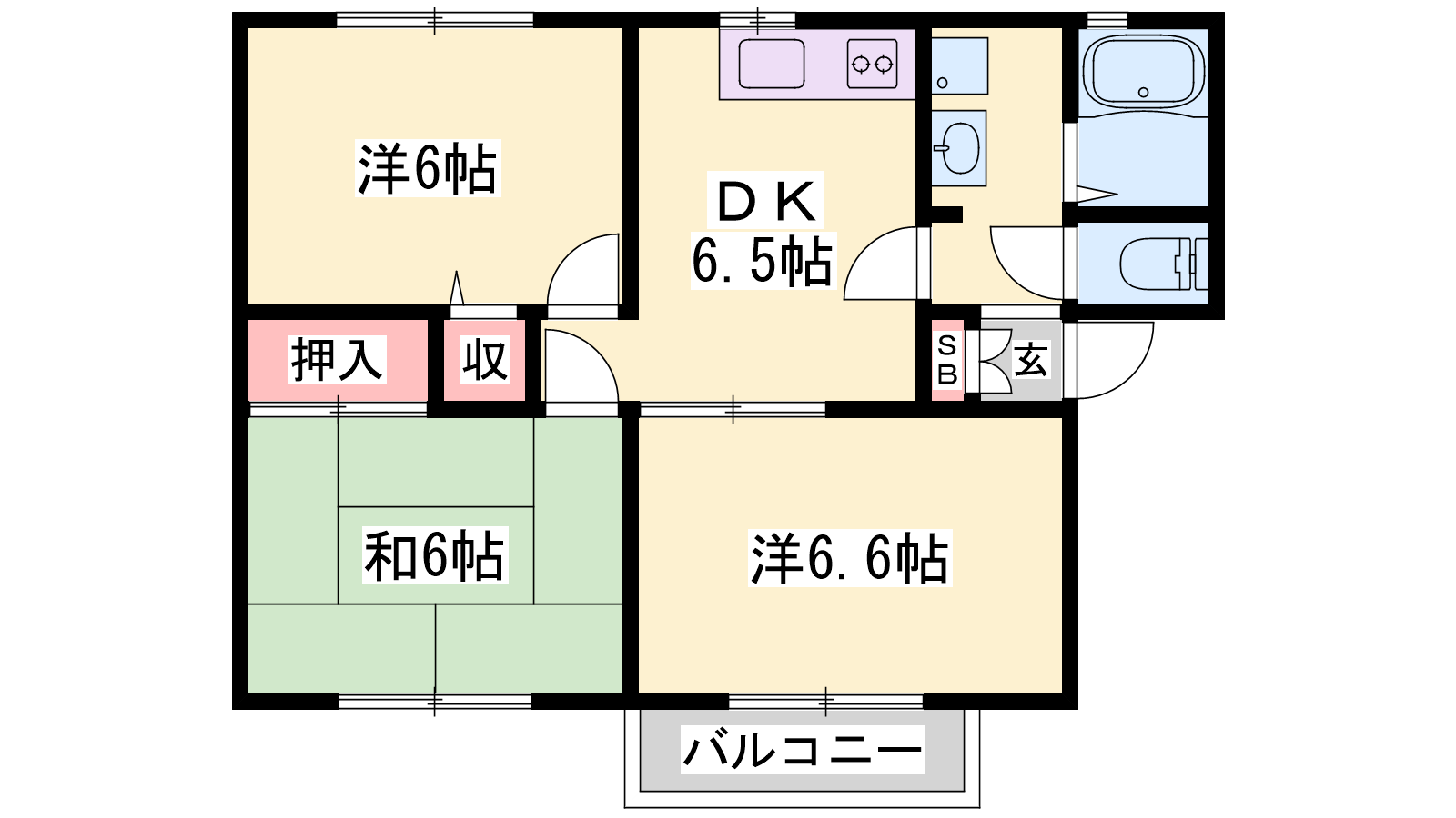 - DK6.5帖、洋室6.6帖、洋室6帖、和室6帖