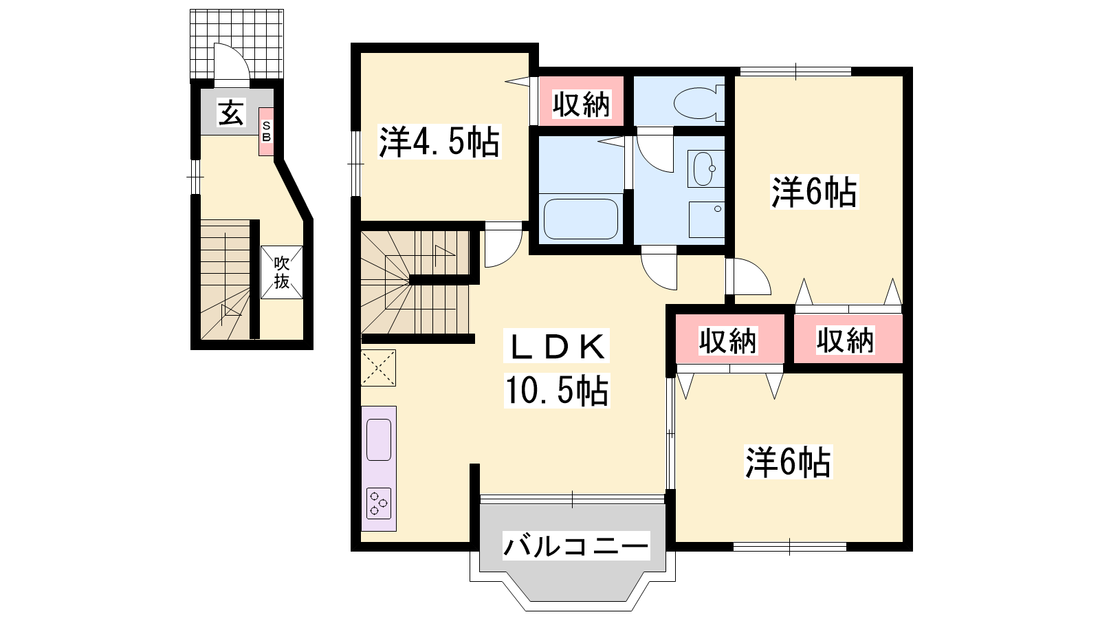 - LDK10.5帖、洋室6帖、和室6帖、洋室4.5帖