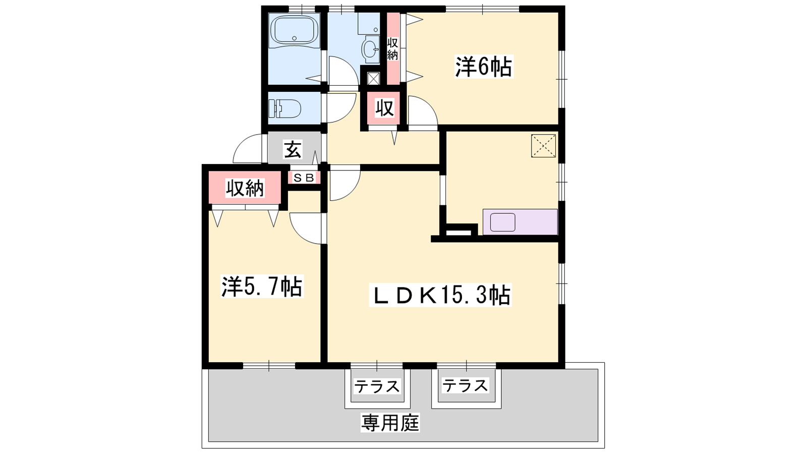 - LDK15.3帖、洋室6帖、洋室5.7帖