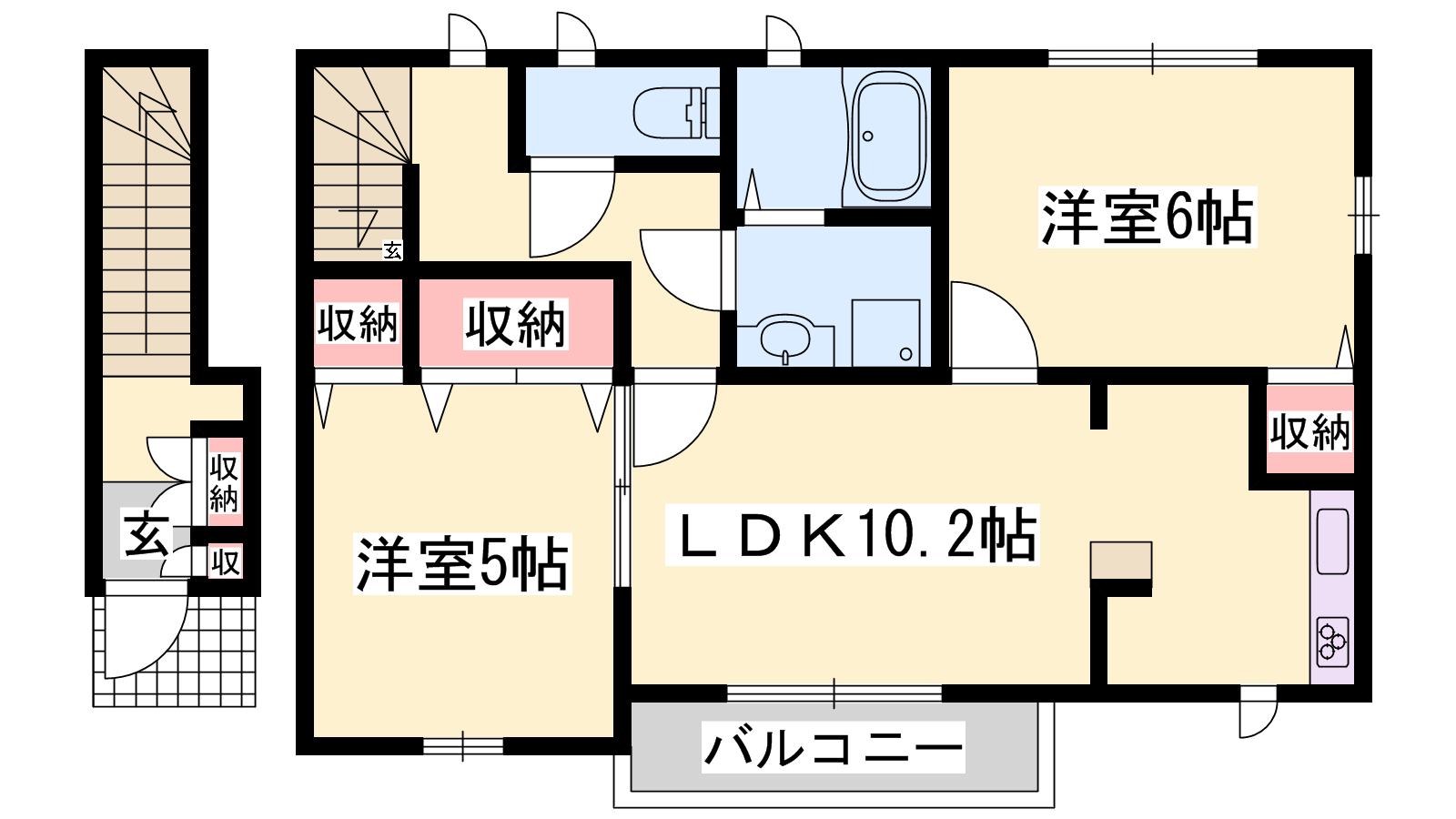 - LDK10.2帖、洋室5帖、洋室6帖